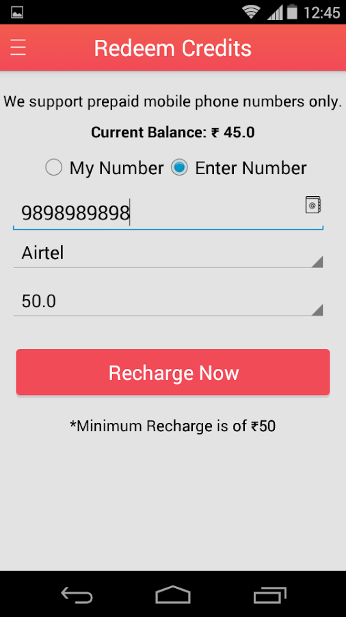 3. Get Recharge when u have Rs 50 in your Wallet.