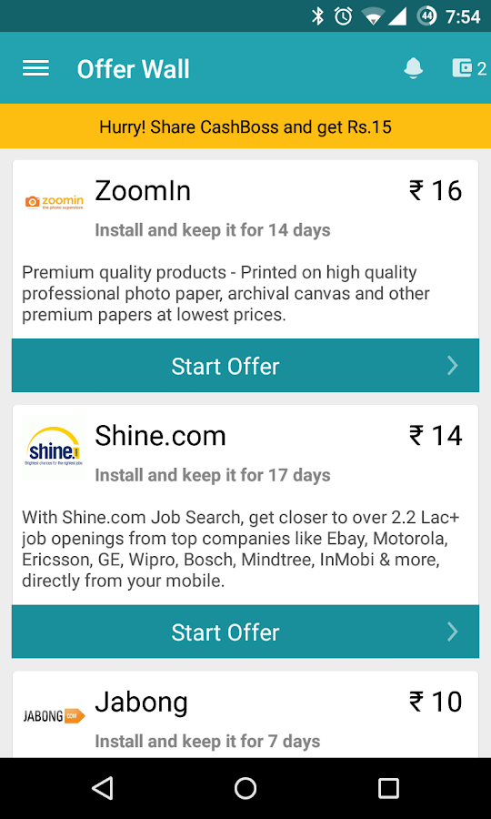 • On your offer wall, discover free offers from top Indian merchants like Amazon, Flipkart, OLX, Snapdeal, Myntra and many more to earn free credit.